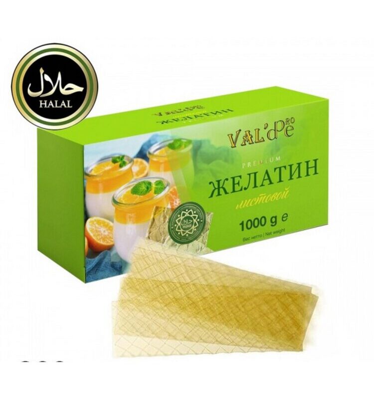 Желатин говяжий пищевой листовой 50 г 180+bloom Gold Халяль Valde,10 шт