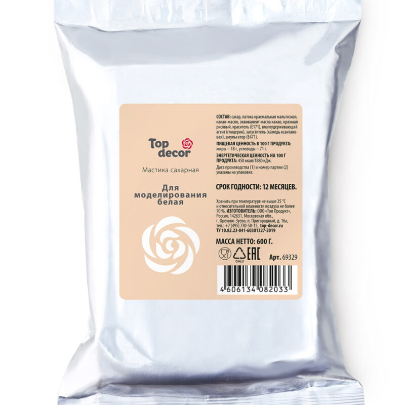 Мастика сахарная для моделирования с добавлением какао-масла, Топ декор, 600г