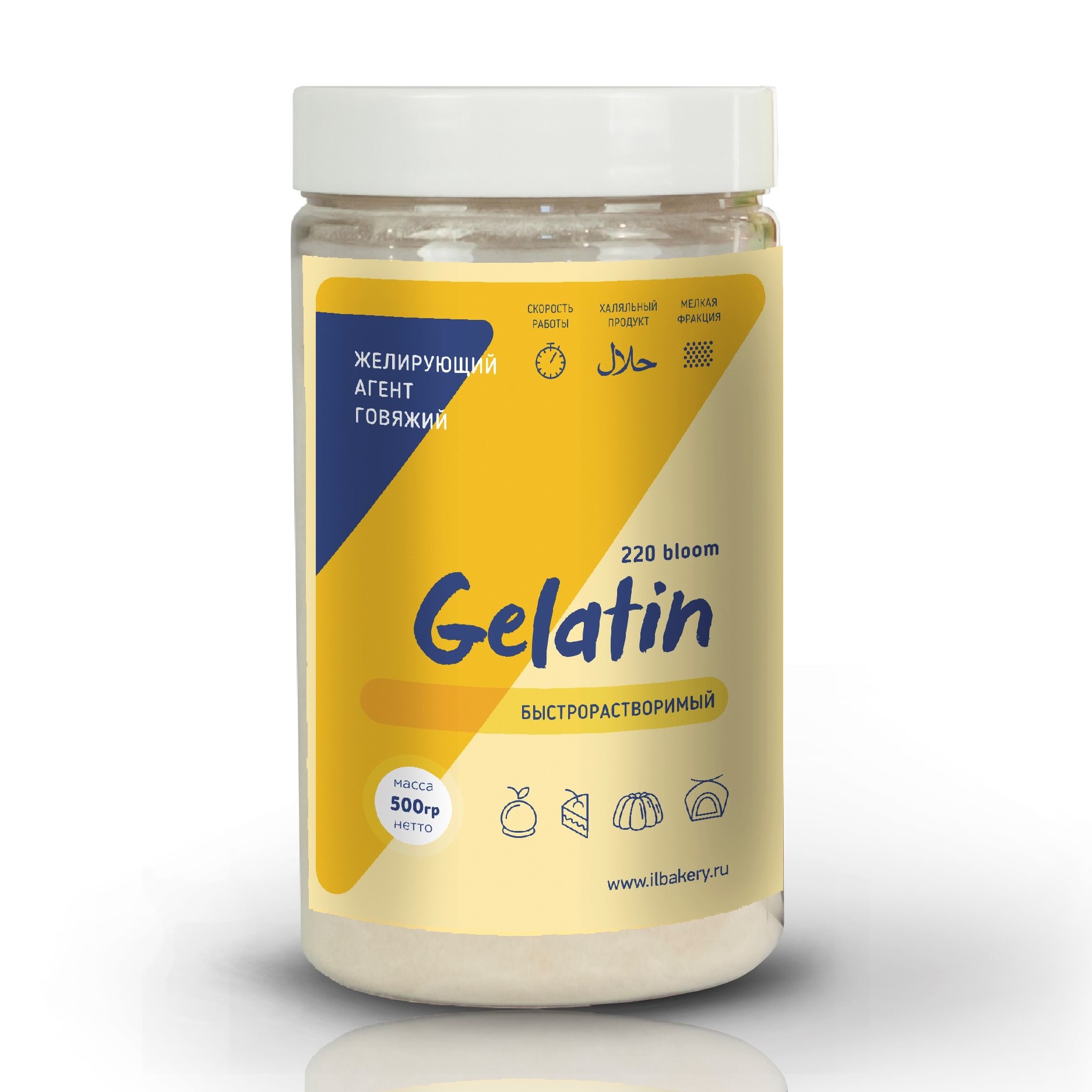 Желатин говяжий обладает высоким гелеобразующим свойством и его используют, как важный связующий элемент в производстве различных видов продукции, как в кондитерском производстве, так и в кулинарии.