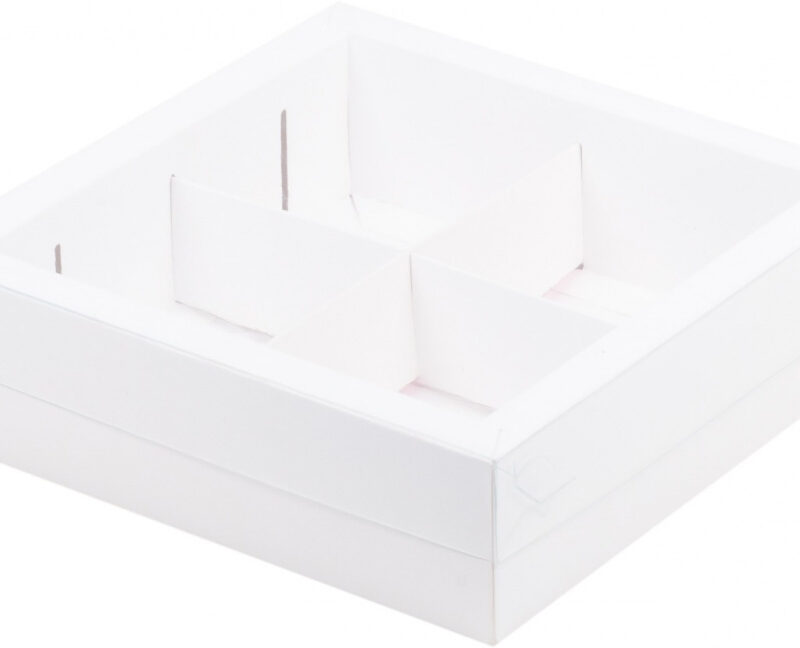 Коробка под ассорти сладостей с пластиковой крышкой (белая), 200*200*55 мм, 4 или 6 ячеек