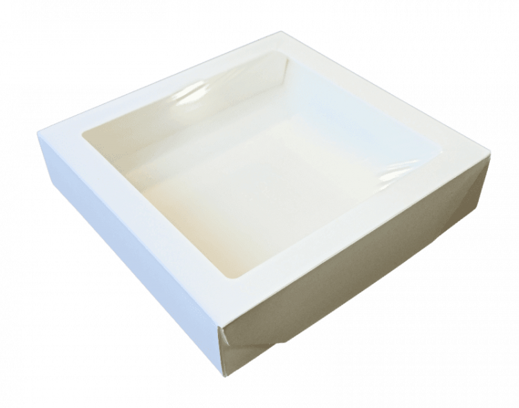Коробка для бенто-торта с окном (белая), 160*160*100 мм