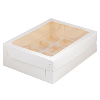 Коробка под капкейки с прямоуг. окошком (белая), 235*235*100 мм, 9 ячеек